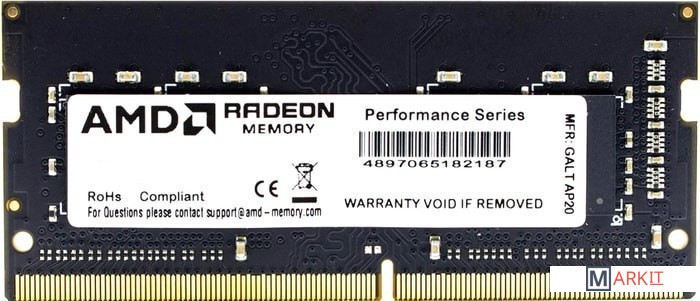Оперативная память AMD Radeon 16GB DDR4 SODIMM PC4-25600 R9416G3206S2S-UO Код: 339296