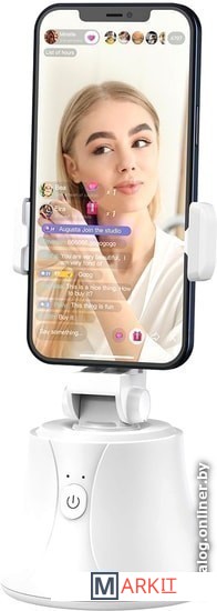 Держатель для смартфонов с диапазоном зажима устройств от 56 до 83 мм. Поддержка устройств на базе Android 8.1+/iOS 12.4+.Для питания держателя используется три батарейки стандарта AA (в комплект поставки не входят).Главной особенностью устройства является наличие функции автоматического снимка и потоковой передачи видео в реальном времени.Поддерживаемые сервисы: Facebook, lnstagra, Youtube, Tiktok, Twitter и Snapchat.Кроме того, данный держатель оснащен механизмом горизонтального вращения на 360° и продольного поворота вверх или вниз на 37°. Устройство можно применять как в настольном варианте, так и использовать в качестве головы-держателя с резьбовым креплением 1/4".